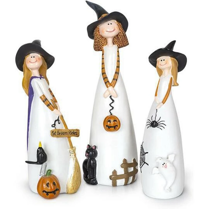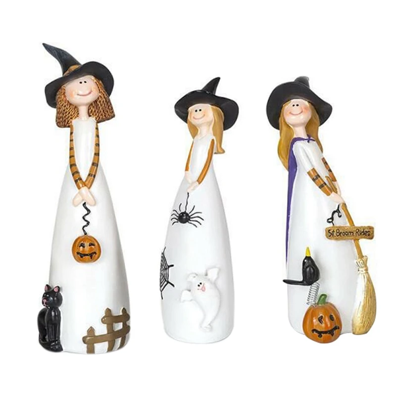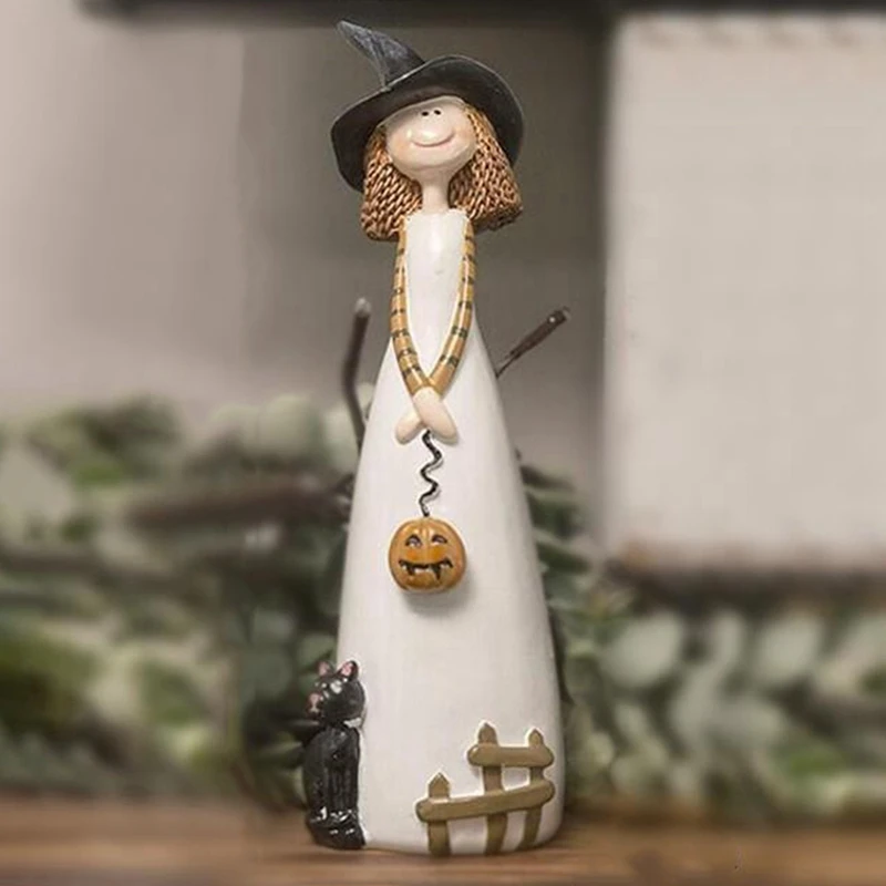 Halloween Witch Figurine Resin Statue – Cute Elf Witch Home Decor Sculpture (1 Piece)